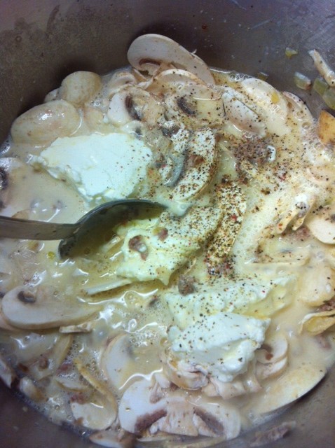3 Salsicce, 2 Zwiebeln, 1 x Frischkäse, ¼ l Weisswein, Salz, Pfeffer, Olivenöl