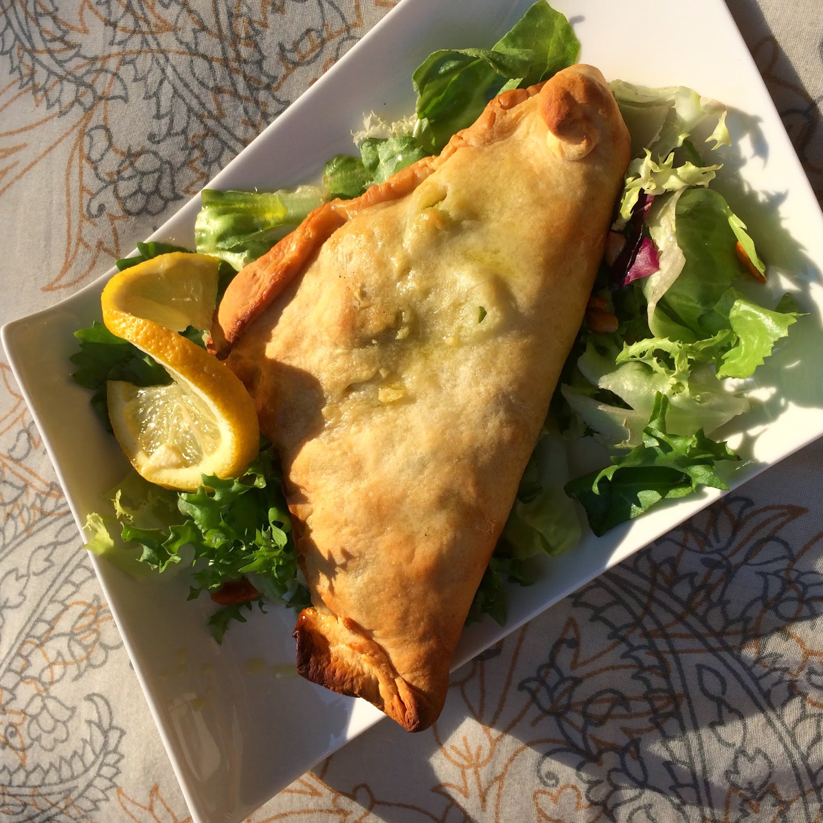 Ein Teil des Pizzateiges war noch übrig. Schnell war ein Paket mit den restlichen Zutaten geschnürt: Frischkäsemischung, Spargelrauten, Sardellen, Kapern….