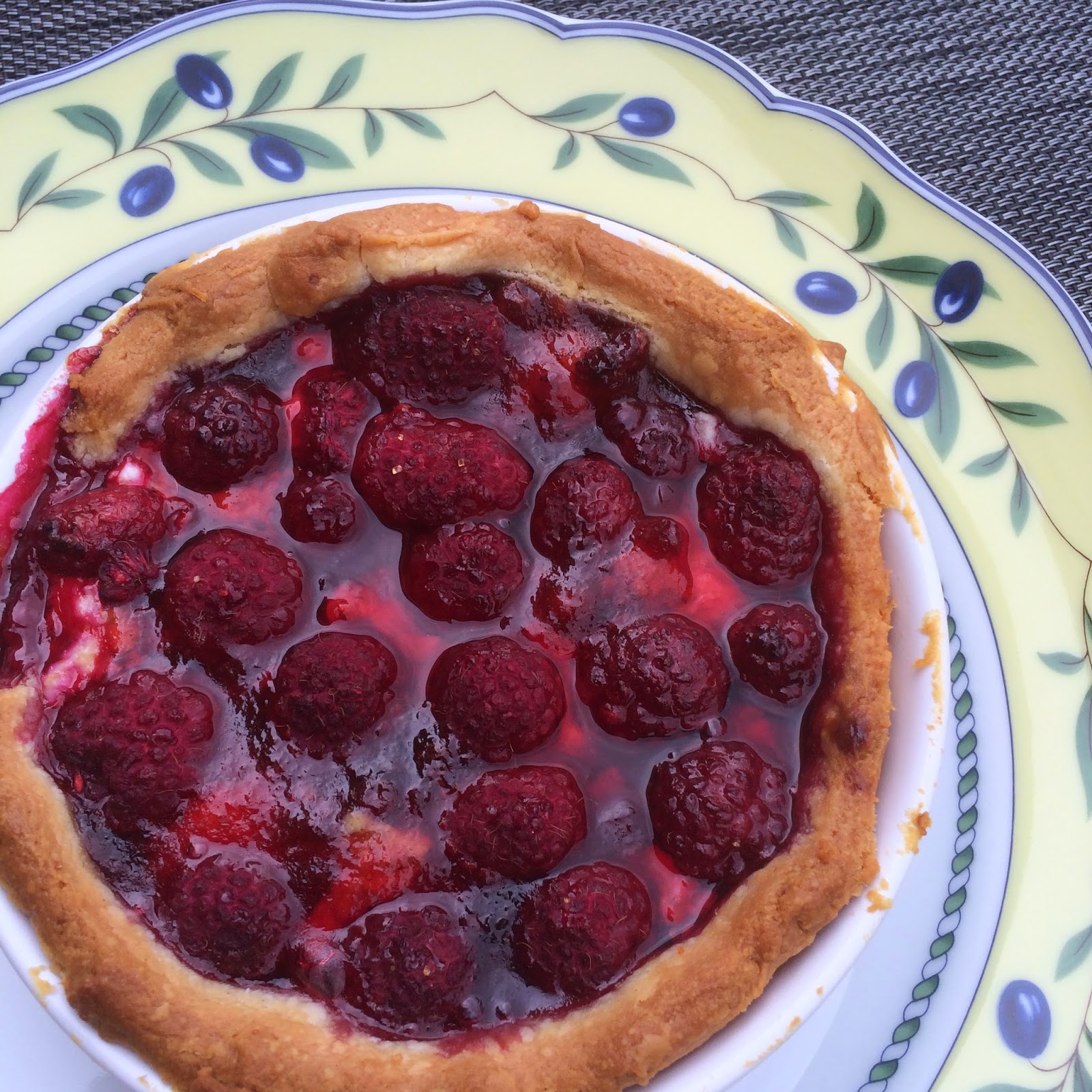 Die deftige Tarte habe ich mit Himbeeren gemacht. Statt Marmelade habe ich noch einmal Ziegenfrischkäse verwendet, außerdem Himbeerbalsam und ein gutes Salz