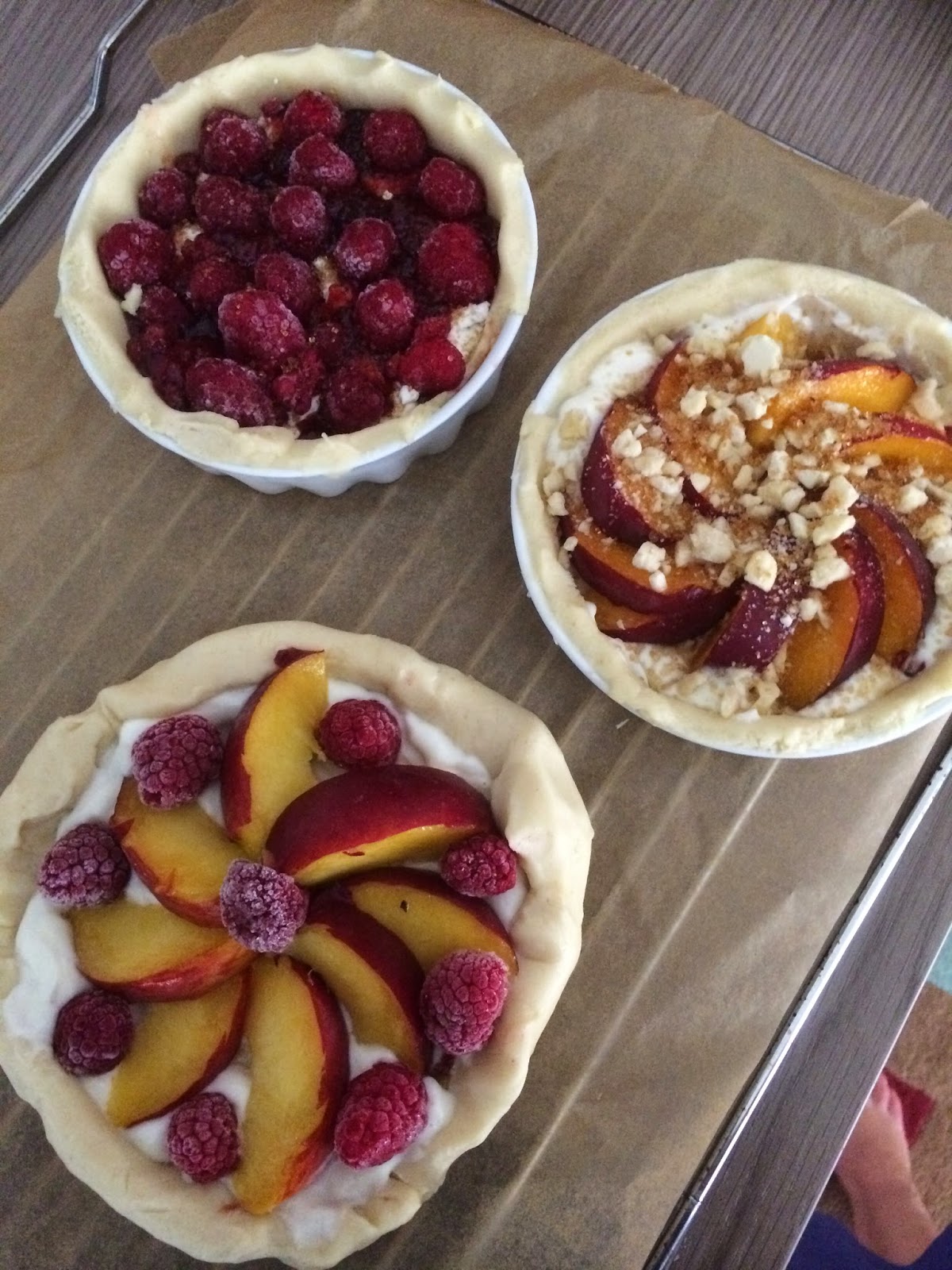 Bei IKEA habe ich vor ein paar Wochen kleine Tarte – Formen erstanden. So konnte ich so schön für jedes Familienmitglied aus dem Grundteig eine eigene Lieblingstarte backen. Für Eva-Lotta gab eine süße Tarte und für den Göttergatten eine deftigere Variante mit Ziegenfrischkäse und Himberen, aber seht selbst: