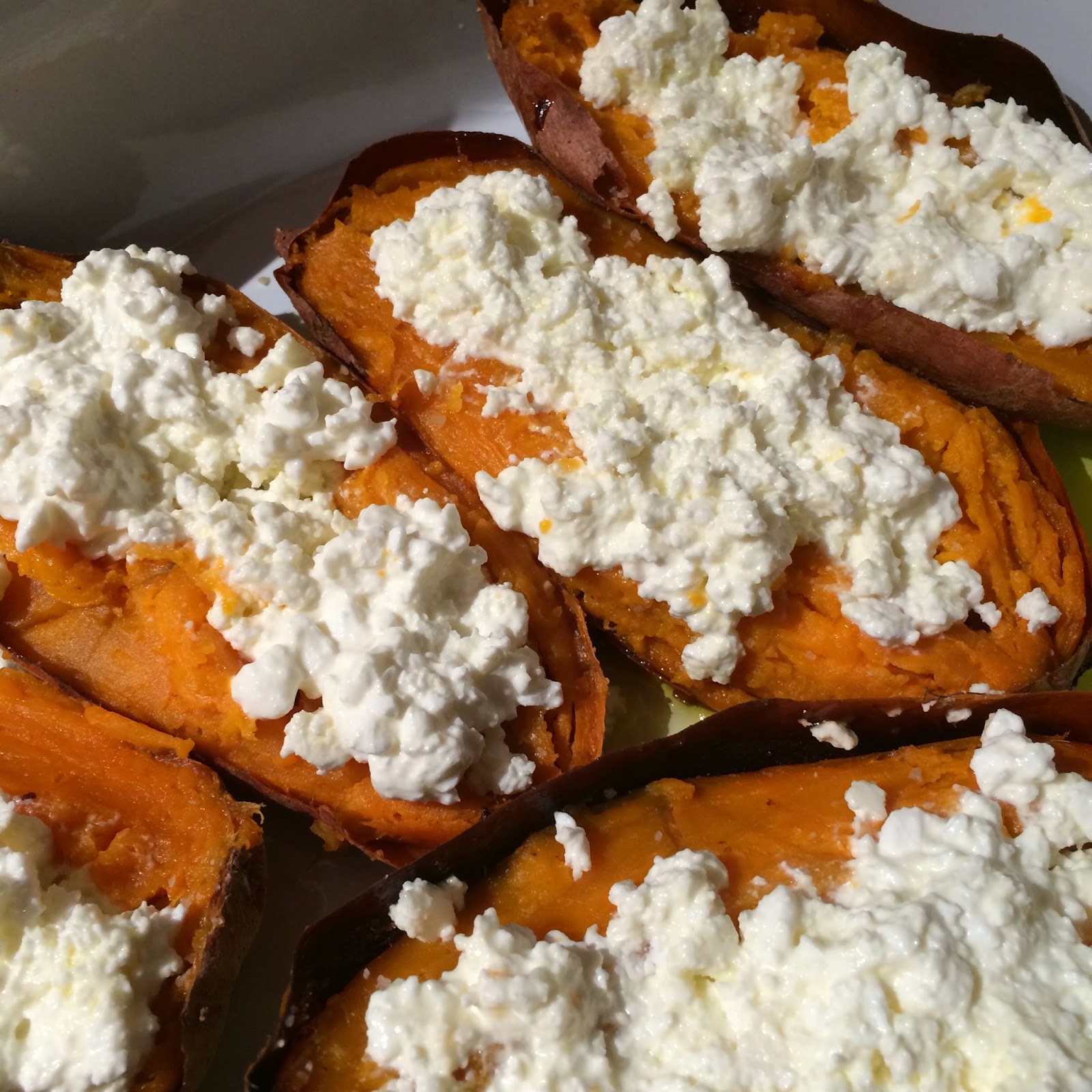 4 Süßkartoffeln (längliche Form und alle von ähnlicher Größe, 1 große Kartoffeln je Person), 1 Tüte Studentenfutter oder alternativ Nüsse deiner Wahl (dann benötigt ihr auch noch Rosinen oder Datteln), Knoblauch, Chilli, Biozitrone, Couscous (200gr.), Salz, Frischkäse 1 Paket, Ziegenfrischkäse (soviel wie Frischkäse), Limonenöl, Cremefine (alternativ Sahne), Garam Masala