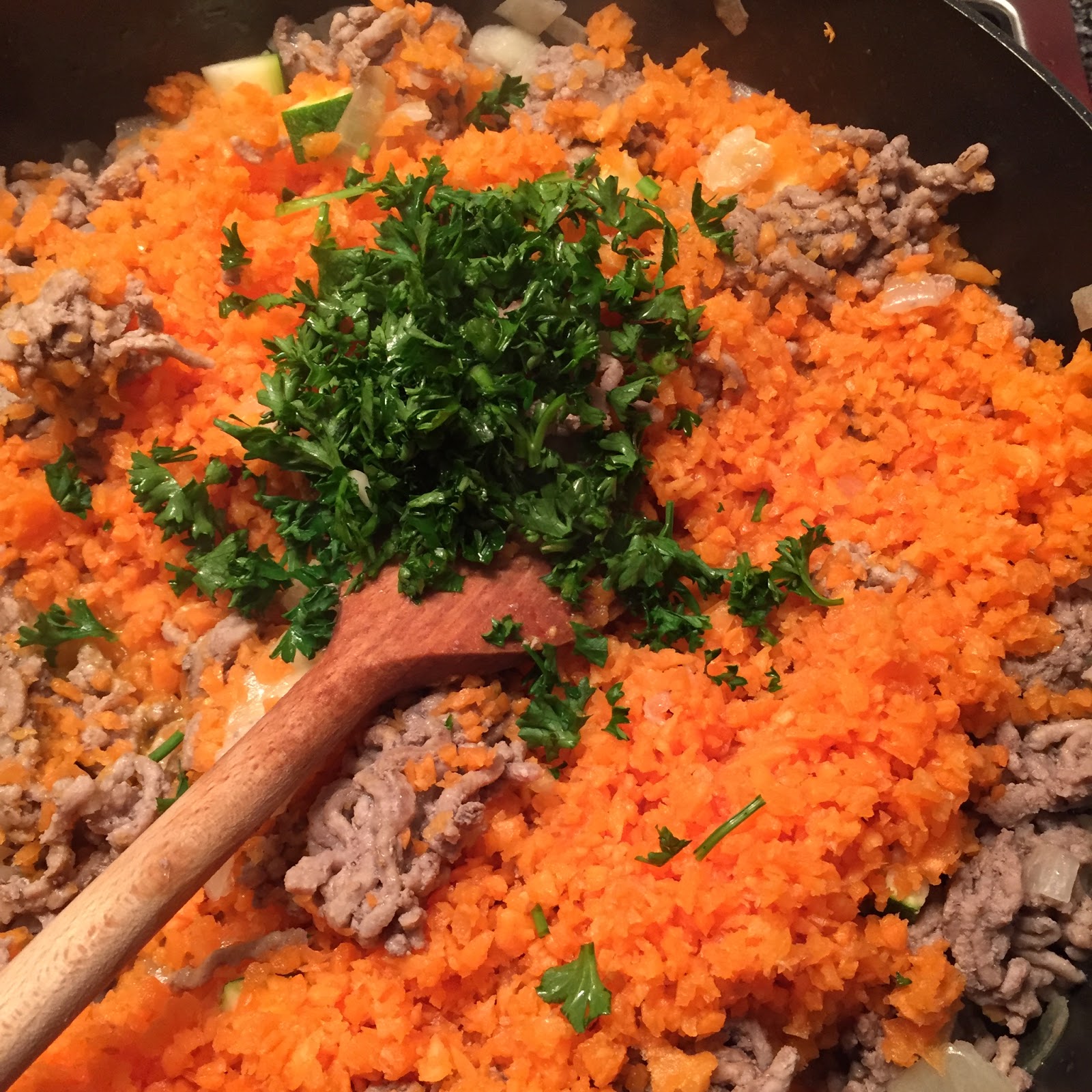 Einer unteren Hackfleischschicht (klassisch aus Lammfleisch) welches durchaus mit den vorhandenen Gemüsen der Saison angebraten werden darf, und der darüberliegenden Schicht aus fein geriebenen Kartoffeln. Ich schreibe Euch hier mein Lieblingsrezept mit gemischtem Hackfleisch auf.