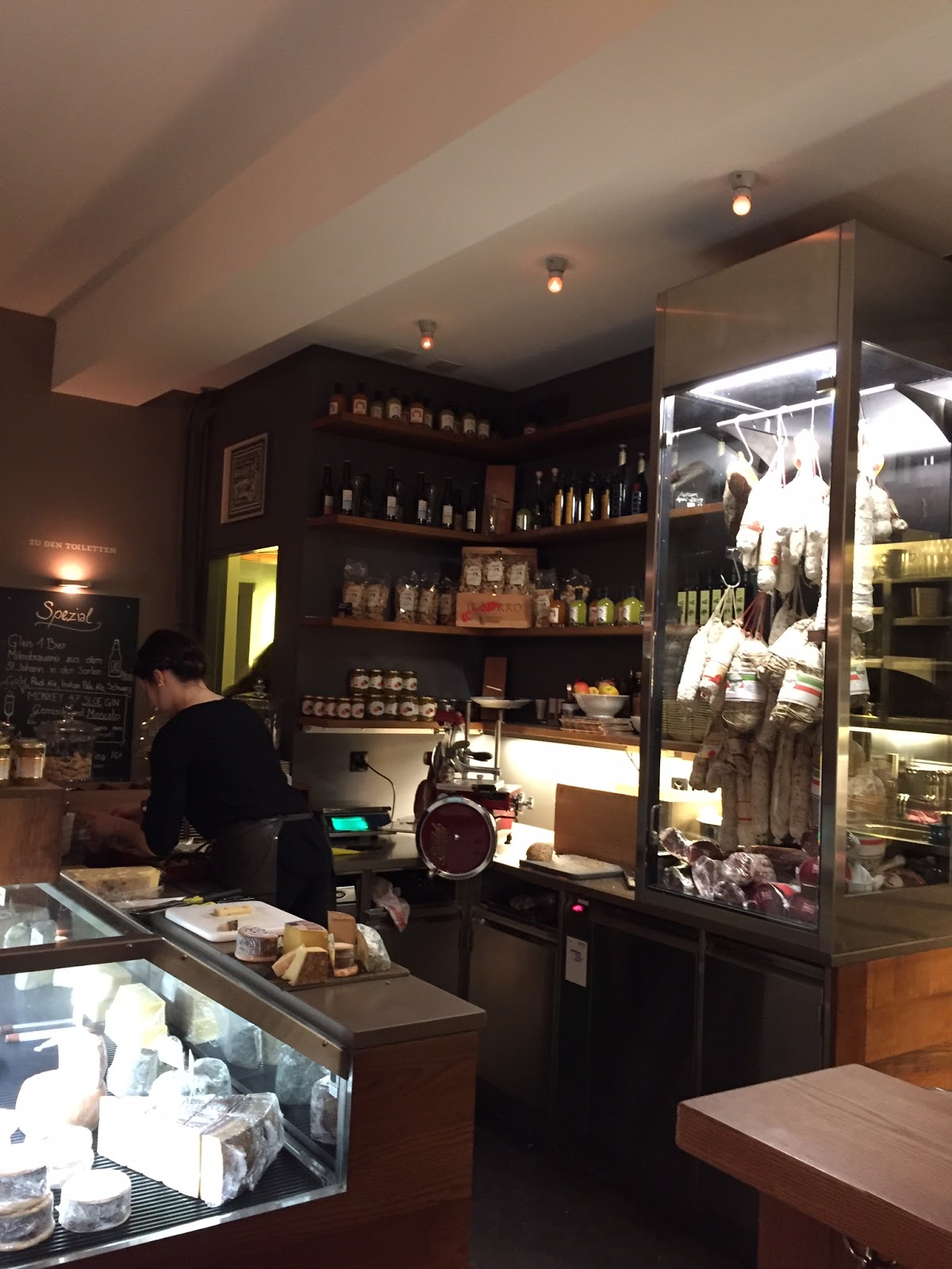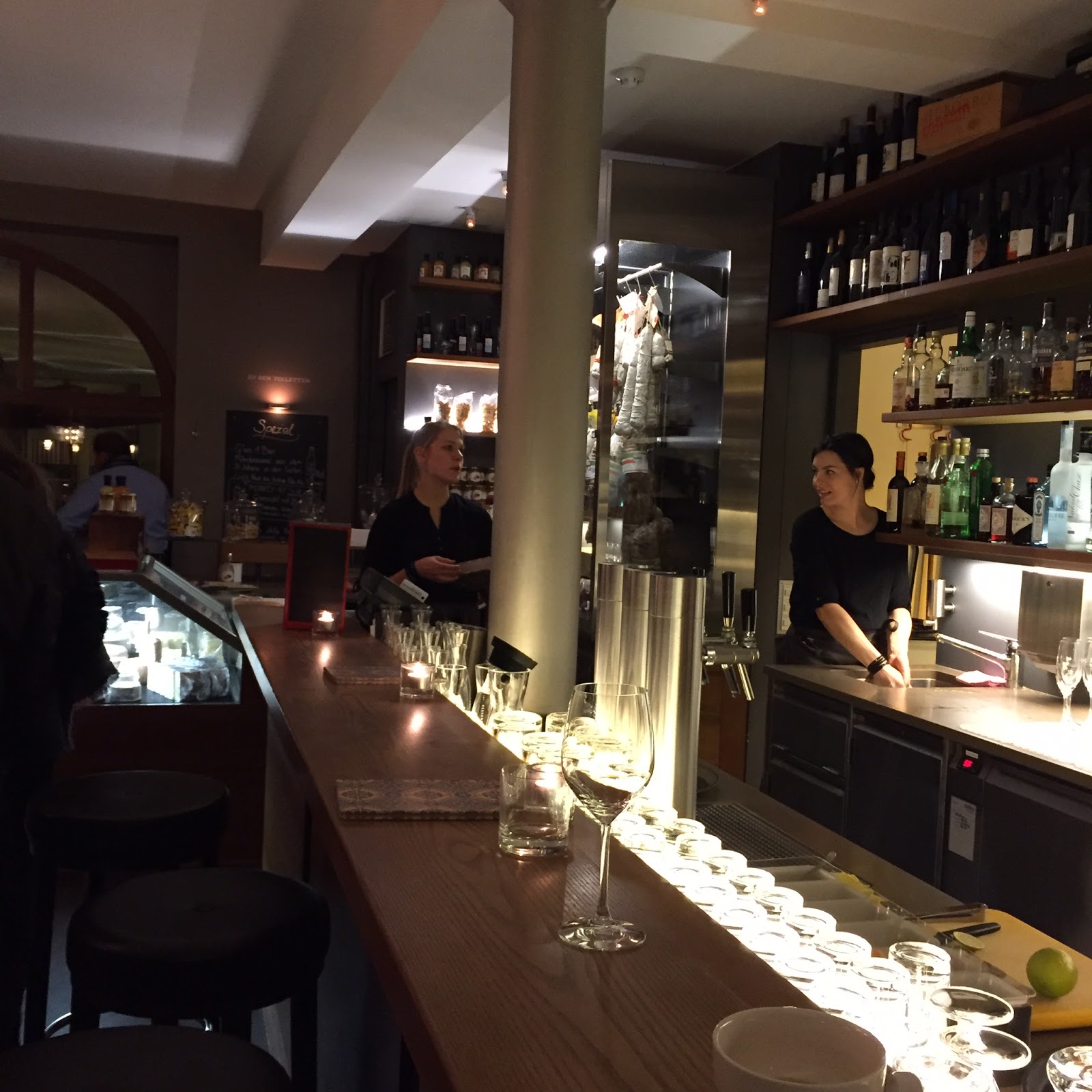 die Großbasel (mit der schönen Fußgängerzone, dem großen Kaufhaus Globus, dem beeindruckenden Roten Rathaus und dem glamourösen Hotel der Drei Könige) mit Kleinbasel verbindet, in einer Seitengasse liegt dieses charmante Kleinod. Hier warten auf Euch über 100 gute Weine und eine umfangreiche Auswahl an Käse-, Schinken- und Wurstspezialitäten! Die Atmosphäre ist herrlich lebendig und wir genießen den Ausklang inmitten diskutierender Studenten, betuchten Schweizerinnen die mit vollbepackten Einkaufstüten und Einheimischen, die sich ungezwungenen auf einen leckeren Wein treffen! Für jeden, der ein wenig des Schweizer-Lebensgefühl erleben möchte, dem empfehle ich die touristisch-geprägten Bistros und Restaurants auf dem Markt rechts liegen zu lassen und auf einen Abstecher ins Consum zu gehen! Es ist lohnenswert! – Ach ja, regt Euch nicht über die Preise auf, es ist in der Schweiz überall so teuer 😉