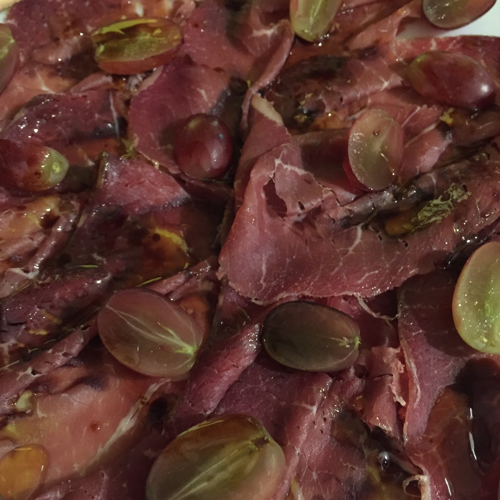 Bresaola – Carpaccio, Trauben, Öl & Essig