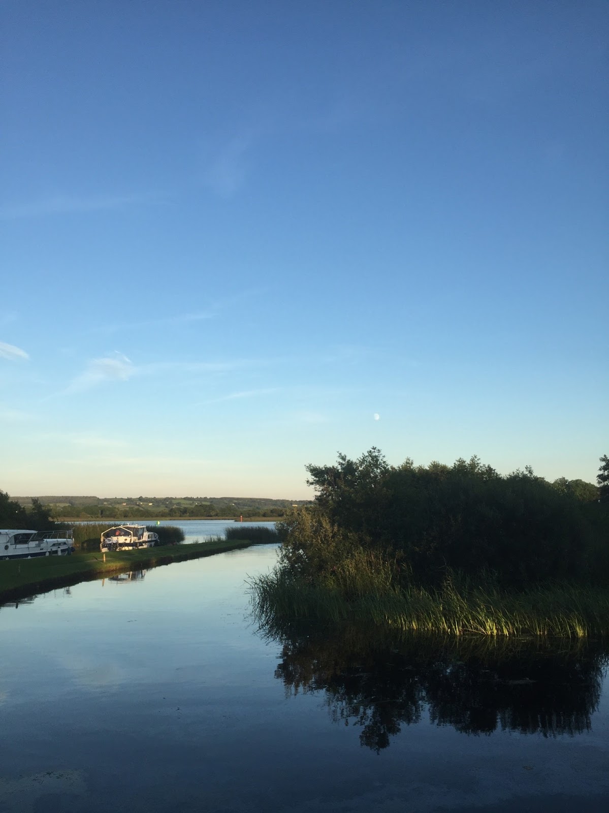 Wir folgen den Shannon und am unteren Teil des Lough Boderg geht es westlich rein in den Black Lough. Es beginnt eine der schönsten Touren der Reise, langsam tuckern wir durch die schmale Flussstraße, es geht in einer Zick-Zack-Tour, der Weg ist gesäumt von wunderschönen, einsamen Buchten, Schilf rauscht, die Sonne scheint, eine leichte Brise weht….. die Welt läuft langsamer hier! Wir genießen!