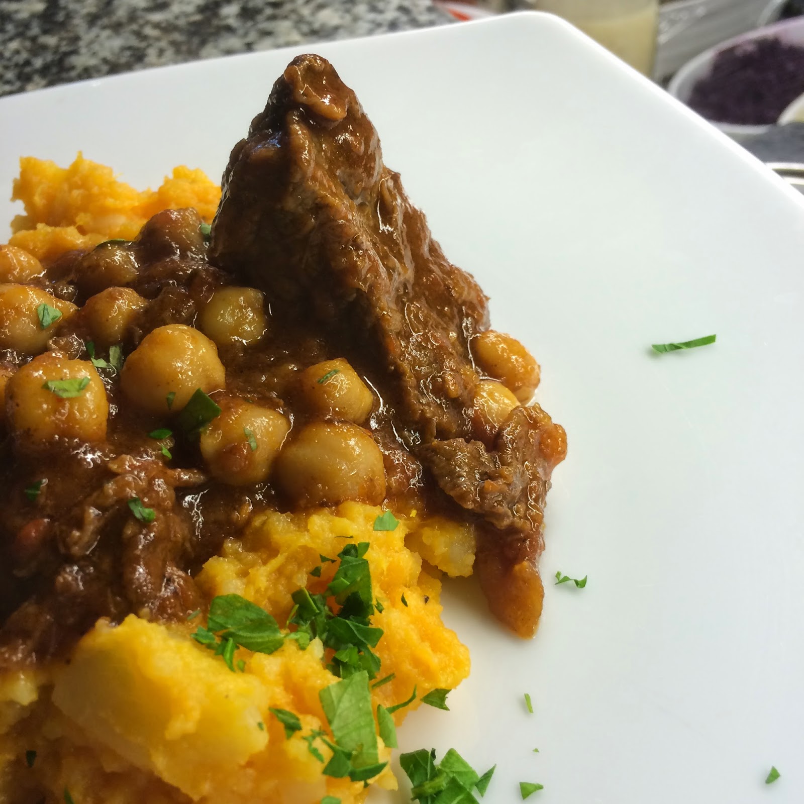Dieses orientalisches Rindgulasch, – oder auch Ragout bereite ich gerne zu, wenn ich eine große Menge Leute beköstigen muss. Es ist ein ideales Partyrezept und durch die Kichererbsen benötigt man keine weitere Beilage wie Kartoffeln oder Spätzle. Durch die Schärfe des Garam Masalas und das orientalische in dem Gewürz ist dies ein Gulasch, welches auch im Sommer an wärmeren Tagen gerne gegessen wird. Die Trockenpflaumen geben einen herrlich fruchtigen Touch!