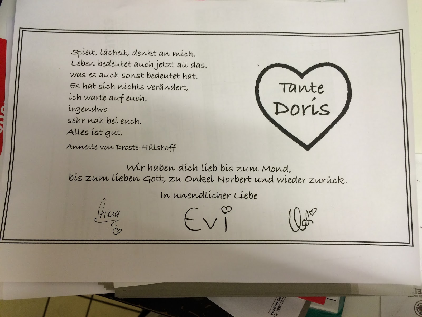 Heute vor zwei Jahren hat das Herz meiner Tante aufgehört zu schlagen.