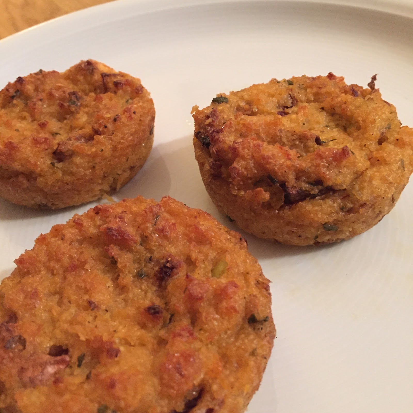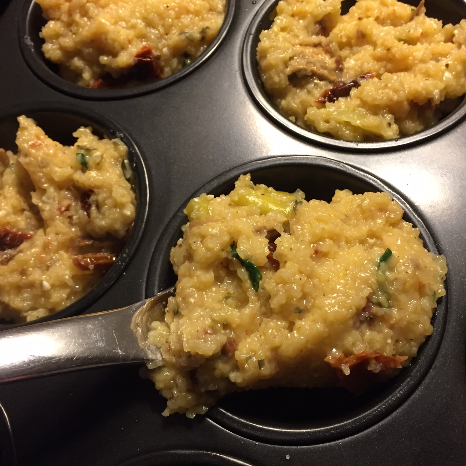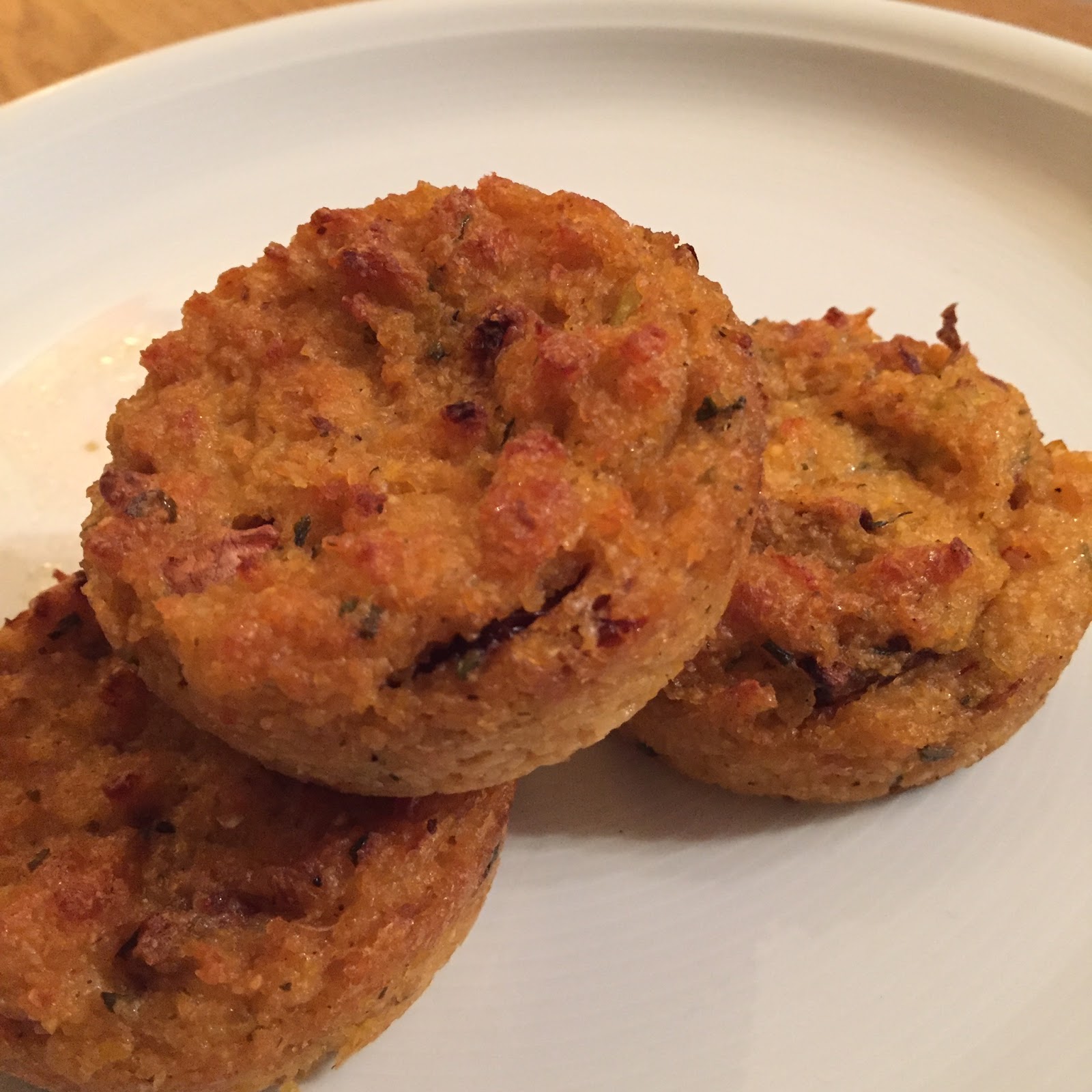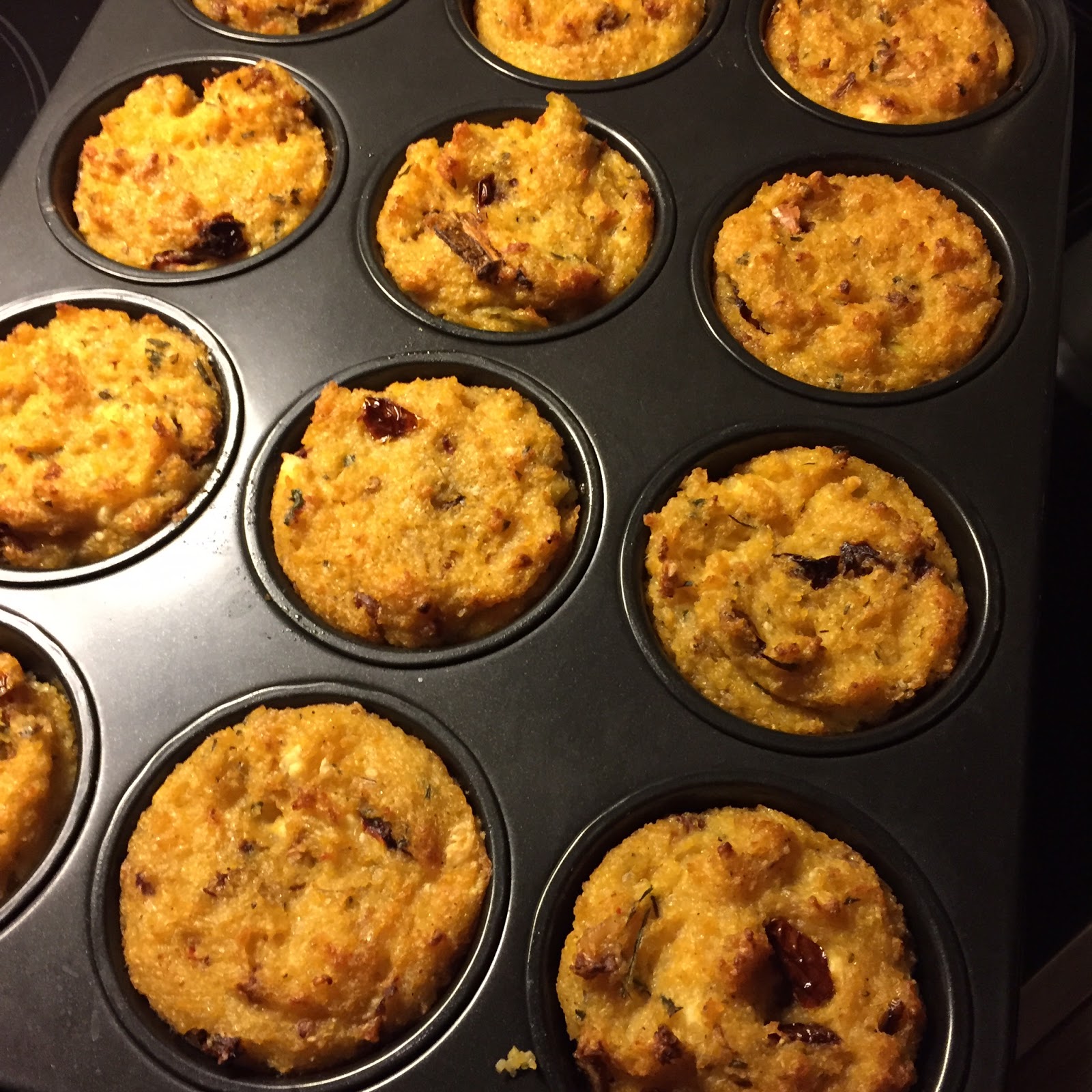 Die Muffins schmecken ausgezeichnet zu einer klassischen Tomatensauce, dann auch gerne noch mit einer Handvoll Ruccola und Parmesan.