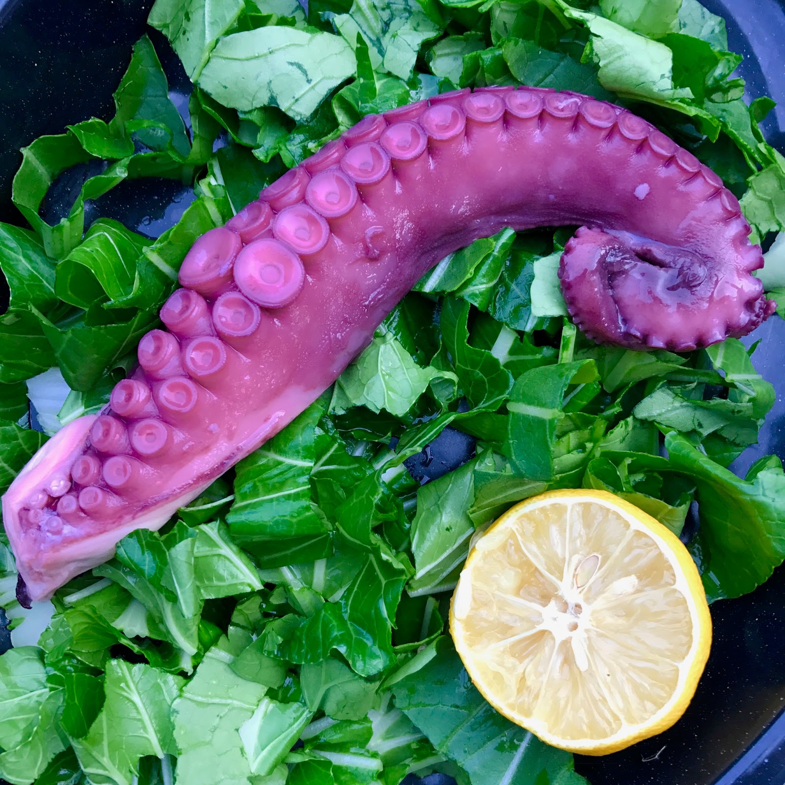 Krake – hatten wir gegrillt, als Carpaccio und gedünstet zur Pasta |