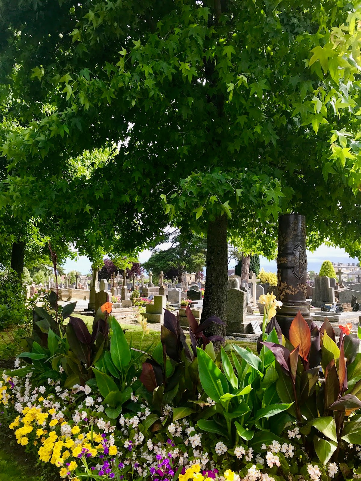 Der Hund und wir finden es fantastisch! Vor uns liegt eine riesige Grünfläche in einem gemütlichem Tal, wir grillen uns Krebse, Muscheln und Sardinen und genießen bei kühlem Wein den tollen Platz in der Abendsonne. Nach dem Abendessen geht es noch mal auf einen Spaziergang durch das kleine Örtchen. Die Stimmung hier ist ruhig und entspannt, fast ein wenig mystisch. Rund um die kleine Kirche ist schon seit Urzeiten ein kleiner Friedhof entstanden. Und durch Zufall finden wir hier auch das Grab des großen Claude Monets!