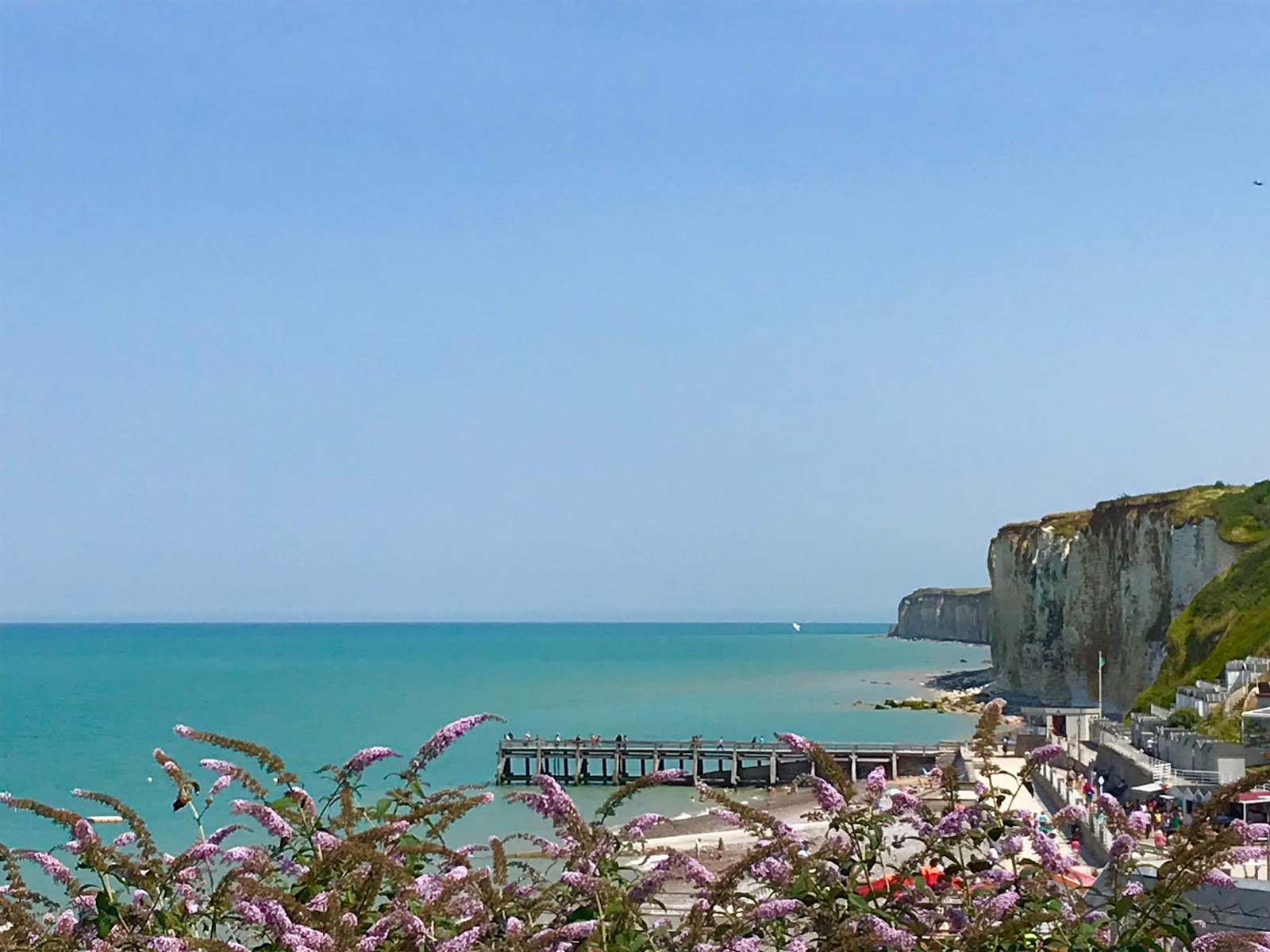 SO EIN ZAUBERHAFTES STÄDTCHEN! Ein Highlight unseres Urlaubes! Wir stehen oberhalb des kleinen Örtchens mit dem kürzesten Fluß Frankreichs, der Veules, die dem Dorf seinen Namen gibt. Auf der Kuppe der Steilküste befindet sich eine riesige, flache Rasenfläche auf der man frei und autark stehen kann.
