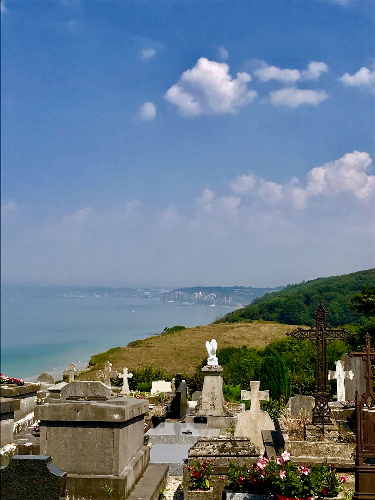 Mir hat es besonders die Kirche in Ortsmitte angetan, bevor wir auf den Spuren zur Quelle der Veules das Dorf erkunden und uns „treiben lassen“. Auf dem Rückweg zu unserem Stellplatz (keine 15 Minuten zu Fuß) lassen wir uns viel Zeit und genießen an unterschiedlichen Aussichtspunkten die felsige Küste.