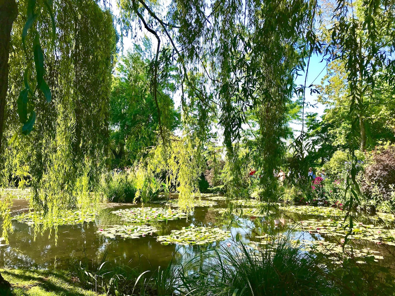 Pünktlich um 8 Uhr weckt uns das Handy – man solle früh sein – so steht es im Reiseführer. Also schnell wach werden, mit dem Hund gehen, Kaffee trinken. Das Museum öffnet um 09:30 Uhr. Am Vorabend standen wir mit ca. 15 Wohnmobilen auf dem Stellplatz. Noch bevor ich mir die Zähne geputzt habe, parken die ersten 10 (!!!) Reisebusse vor uns. Um 9:15 sind es bereits 18 Busse! Wir schwingen uns in unsere Schuhe und überholen auf dem Hinweg zum Haus (ca. 5 Minuten) noch eine italienische Reisegruppe. Auch an den Japanern drängelnd wir uns geschickt zu zweit vorbei, so dass wir eine der ersten sind, die Monets Haus erreichen.