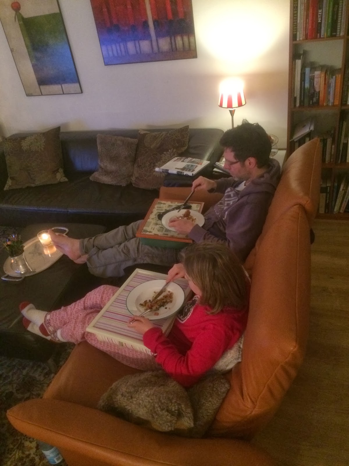 Womit bewiesen ist: Wir sitzen nicht immer gemeinsam am Esstisch und pflegen Konversation. Ich füttere gerne meine Meute schon mal ab und habe dann ein paar Minuten Zeit, in Ruhe weiter zu arbeiten ;-))