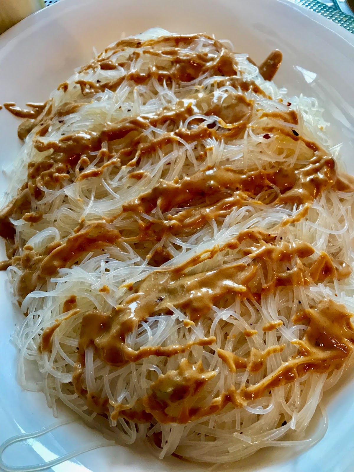 Ein wenig der Erdnusssauce drüber geben.