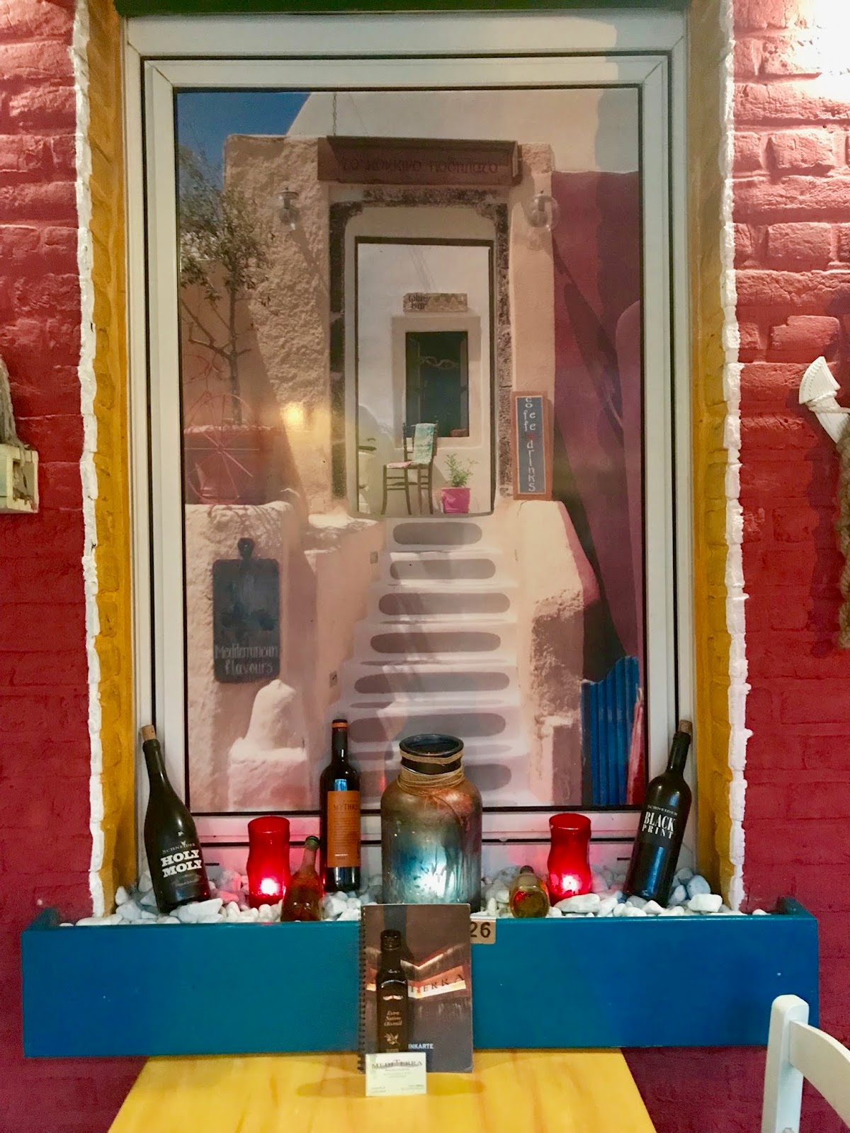 Vielleicht ist es ein Glück, das der Inhaber und Koch nichts auf das world-wide-web gibt, sondern sich auf das Kochen konzentriert! Einen Internetauftritt über das MediTerra sucht man vergeblich. Dafür fröhnt der Besitzer seinem liebsten Hobby: und das ist neben der griechischen Esskultur seine Leidenschaft zum Wein. Für den Gast nicht der schlechteste Kompromiss: hier bekommt ihr tolle, ausgewählte Wein für faire Preise.