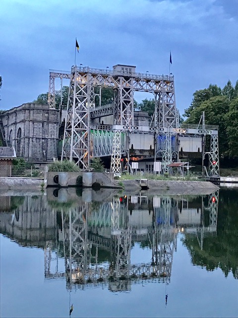 Zum Übernachten fahren wir in Belgien La Roeulx an und stehen dort ruhig an einem schönen Kanal gegenüber eines alten, imposanten Schiffshebewerkes.