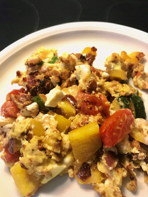 Denkbar sind auch Paprika, Champions, Schinkenwürfel, Lauchzwiebeln, Kapern, Anchovis, Parmesankäse… Jedes Sonntagsomelett sieht bei uns anders aus. Ich verwerte gerne Dinge, die übrig geblieben sind oder die weg müssen…. traut Euch – aber würzt engagiert! Dann wird es jeden Sonntag eine echte Delikatesse…!