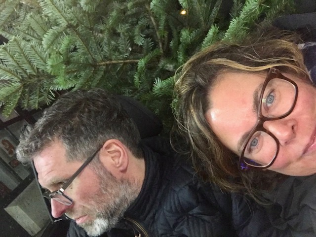 Selfie mit dem gekapertem Weihnachtsbaum im Cabrio und wirklich unwirschem Ehemann 😉 |