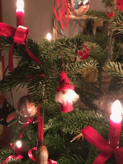 Weihnachtsbaum von 2017 – ich liebe diese Wichtel-Weihnachtsbaumanhänger – jedes Jahr habe ich einen von meiner Mutter geschenkt bekommen…. dazu selbstgebackene Lebkuchen und rote Schleifen…. |