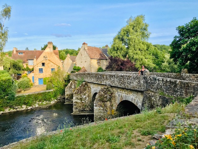 Keine zwei Stunden später kommen wir an in Saint-Céneri-le-Gérei – einem der 100 schönsten Dörfer Frankreichs. So klein, dass man schneller durchgefahren ist, als man glaubt und wir müssen 2 mal drehen, um die winzige Straße zum anvisierten Stellplatz zu finden.