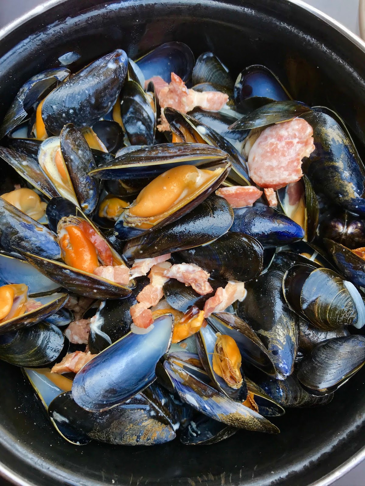 Dazu genehmigen wir uns eine Tasse wunderbaren Cidre und Muscheln…