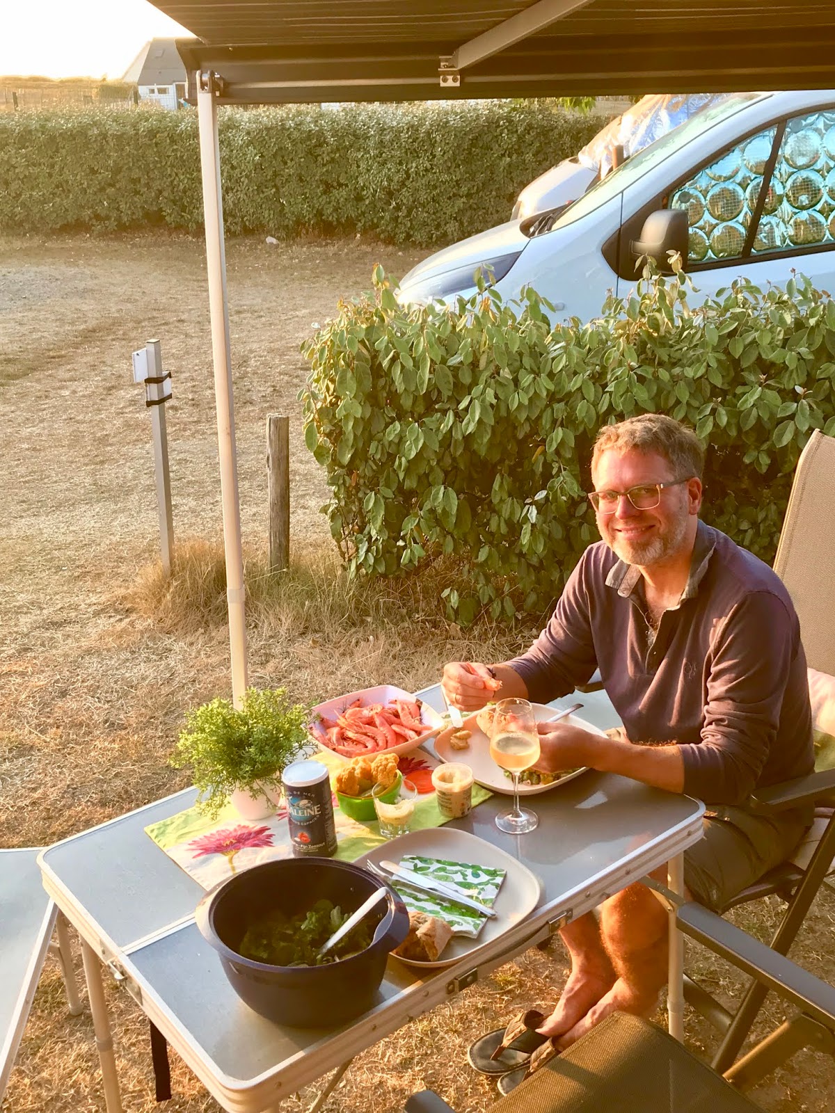 Was für ein wunderschöner Tag! Am Wohni sitzen wir noch in der warmen Abendsonne, lauschen dem Meeresrauschen und schweigen zu feuriger, eisgekühlter Salsa aus den besten Tomaten der Welt und gegrillten Peperoni…