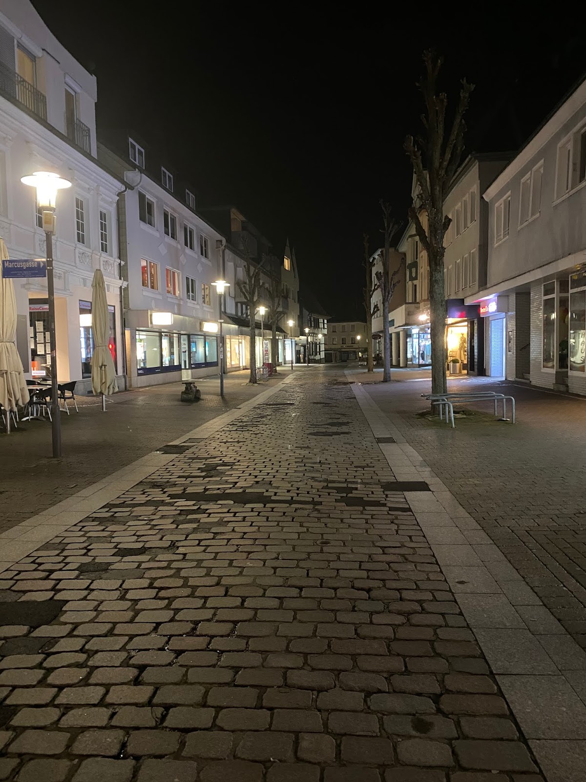Christian und ich gehen danach über die Massener Straße. Es ist leer. Annett vom Senfladen hält noch die Stellung. Wir bestellen uns eine Currywurst und tauschen uns kurz aus.