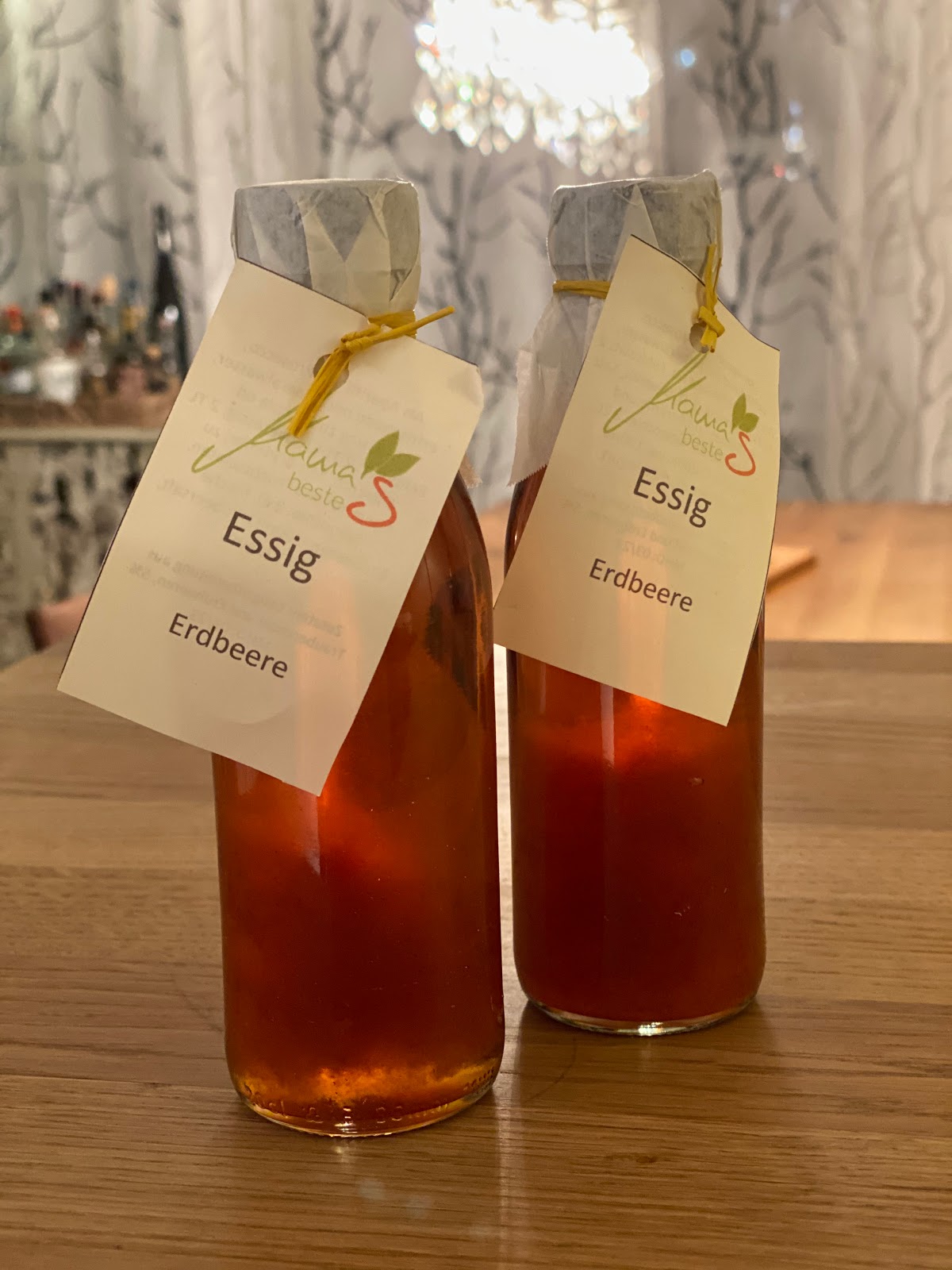 Unser natürlicher Erdbeeressig (ohne Zusatz von Farbstoffen und weißem Zucker!) …